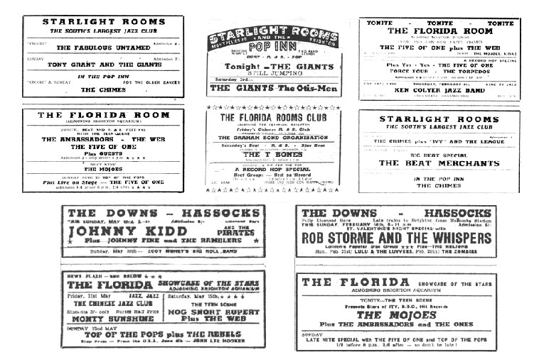Various adjoining ads for The Starlight Rooms, The Florida Rooms and The Downs. From 1964 & 1965.